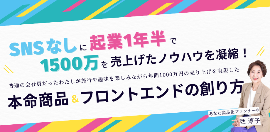 SNSなしに起業後1年半で1500万を 売上げたノウハウを凝縮! 起業ネタもない会社員だった私が 年2回のバリ旅行、趣味を楽しみ 「西さんて、いつ働いているの?」と 言われながら年1000万越えを実現した 本命商品・フロントエンドの創り方~オンライン~